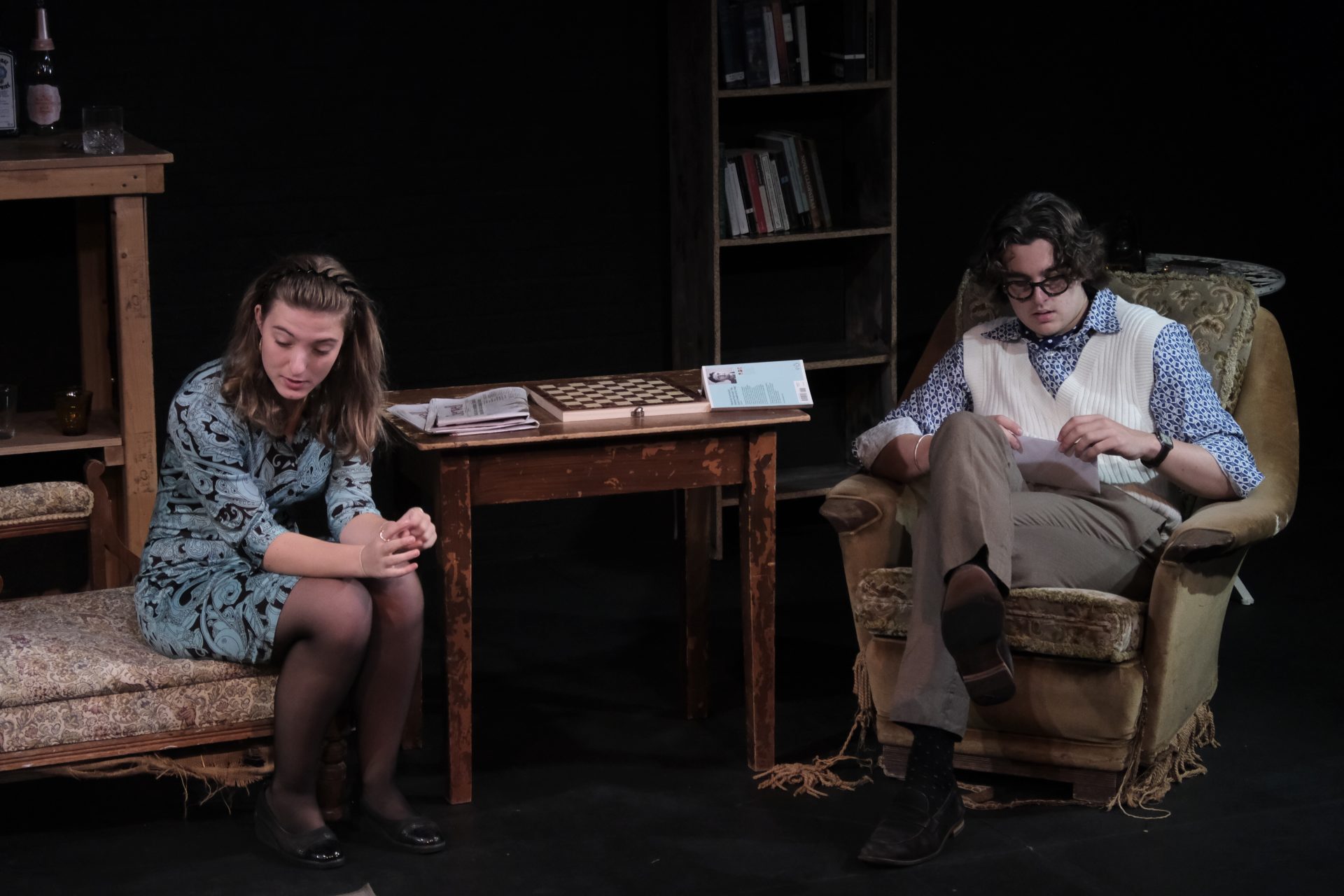 Other moments lacked polish, but this can be attributed to opening night nerves. Joey’s first entrance onto stage could have had more impact, as the audience experienced it as a random disembodied voice in a moment of silence. Leaving a moment or two for the audience to register the actors’ reactions to Joey would have aided this. Likewise, Sam Gosmore’s portrayal of Sebastian as blustering and pompous was generally effective, but there were points of dialogue when his words were hard to make out amongst this characteristic huffing and puffing. I also felt that the couple of passages enacted around the chess set suffered from a loss in momentum, but this can be blamed on the demands of having this tedious prop in the original script.