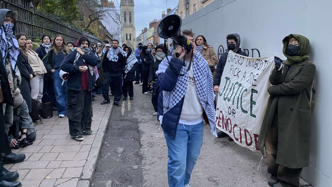 At least three protesters were arrested as part of a demonstration disrupting former Israeli Prime Minister Ehud Olmert’s address at the Oxford Union this Sunday afternoon. A group of around 60 activists gathered outside the buildings on St Michael’s Street, chanting and blocking access to the main entrance, leading to the event being delayed by an hour.