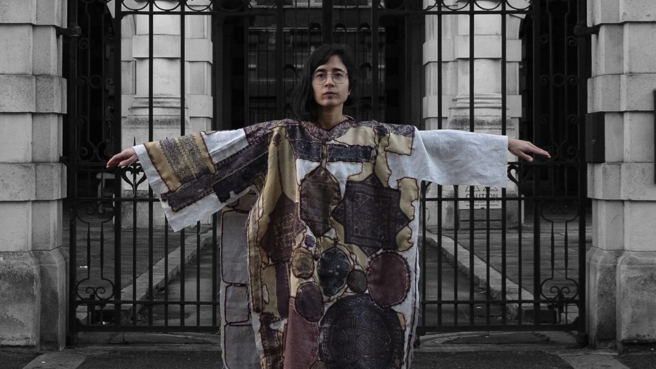 In the photos, Egyptian artist Sara Sallam sheds light on the exploitative and colonial 19th-century practice of violently excavating Byzantine-era Egyptian cemeteries to steal textiles from the deceased. She poses in front of Blythe House in London, a huge storage facility containing millions of artefacts from British museums, and wears a tunic made of facsimiles of late antique Egyptian textiles, sewn together by the artist herself. Once worn to express social status and Christian devotion, western colonists admired them for their aesthetic value alone. They ignored the dignity of the dead and instead proceeded to inflict more violence against Christians in the Middle East, which continues today in the persecution of Palestinian Christians, the direct descendants of such rich but exploited traditions. As a Byzantinist myself, I was extremely pleased to see this under-researched aspect of history explored in a tender, personal way. Sallam stitched together reproductions of textiles from the Akhmim cemetery to represent the literal suturing of the wounds created by colonisation. The additional medium of photography situates the tunic in a colonial setting and thereby renders its use an act of protest, a confrontation of colonised and coloniser through material objects.