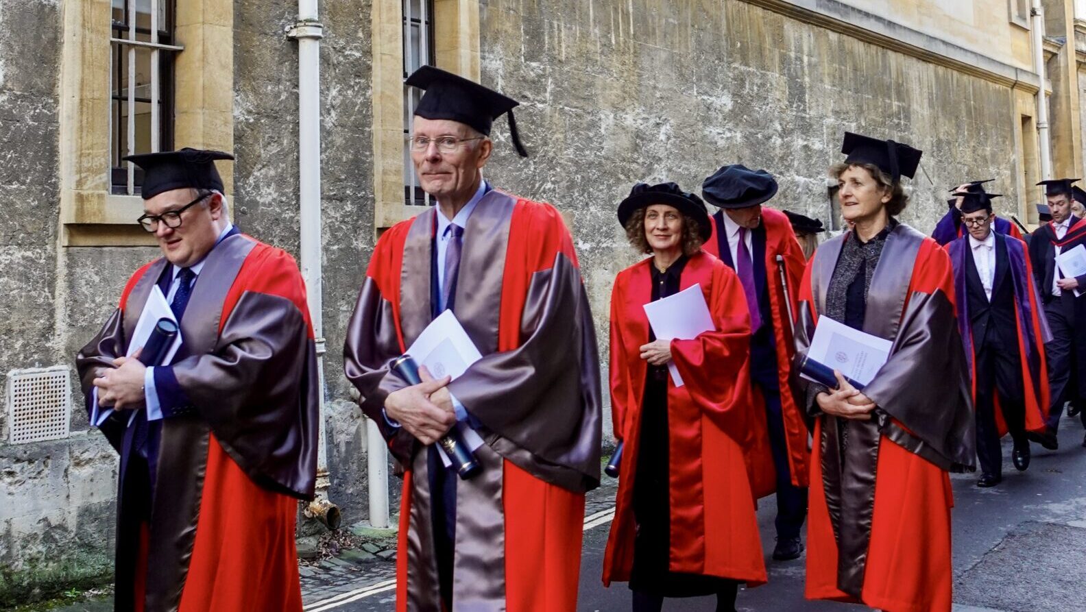 Following the ceremony, which took place in the Sheldonian Theatre, the honorands processed under the Bridge of Sighs and along New College Lane.