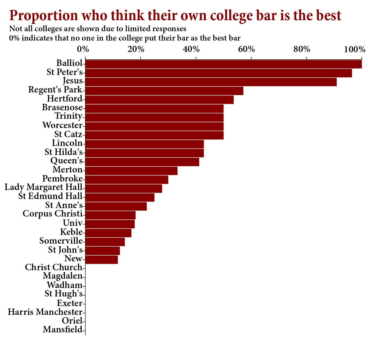 We received responses from every college, but excluded colleges from rankings when they were based on fewer than seven responses (Merton College, Mansfield College, St Catherine’s College, and Trinity College).
