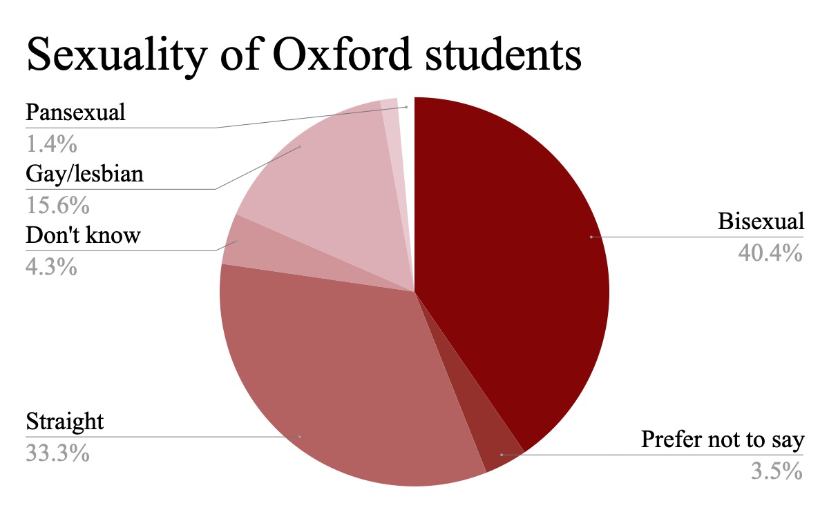 Perhaps more interesting than how much sex Oxford students are having is who they are having sex with. According to our polling, the number of gay/lesbian, bisexual and pan sexual Oxonians is greater than that of the straight students. Polling places estimates only 30% of Zoomers identify as LGBTQ; either this figure is way under or Cherwell has a particularly queer readership.